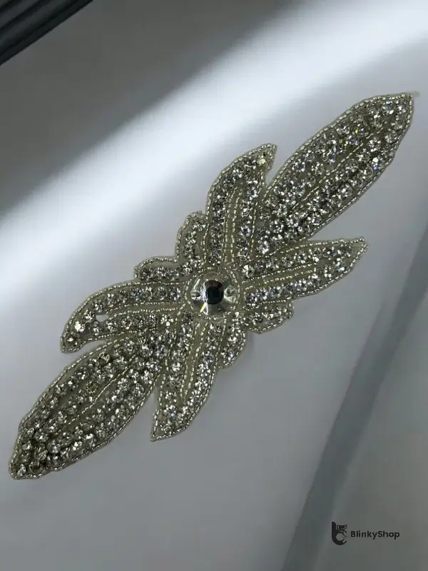 Aplicația termoadezivă cu strasuri, decorată cu strasuri si mărgele. Aplicațiile termoadezive sunt utilizate pentru personalizarea articolelor textile. Se aplică prin presare la cald și este disponibilă în culoarea argintiu.