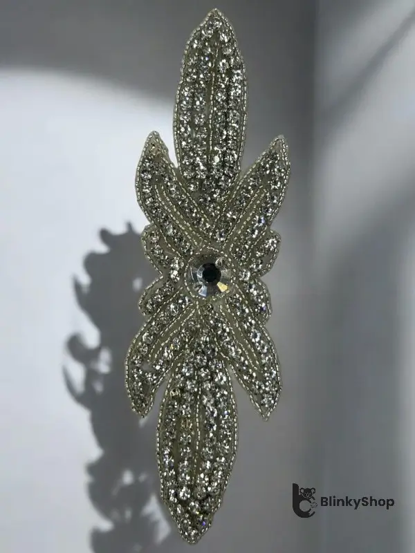 Aplicație termoadezivă cu strasuri și  mărgele. Folosită ca elemente decorative pentru articole elegante sau de ocazie.