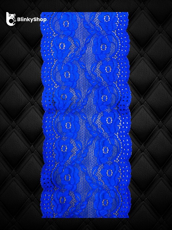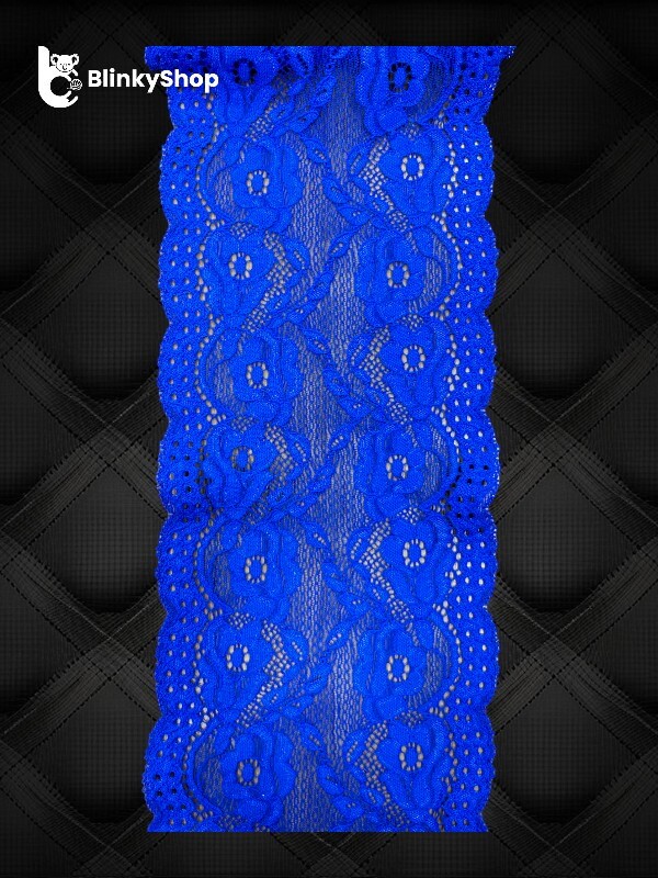 Dantelă din poliester, cu model floral, disponibilă în culoarea albastru royal. Ideală pentru rochii, lenjerie și accesorii.