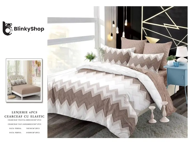 Lenjerie de pat din finet din 6 piese, cearceaf finet cu elastic potrivit pentru orice dormitor. Material rezistent, fin si elegant. Producător: Primavara