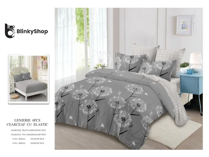 Lenjerie de pat din finet din 6 piese, cearceaf finet cu elastic potrivit pentru orice dormitor. Material rezistent, fin si elegant. Producător: Primavara