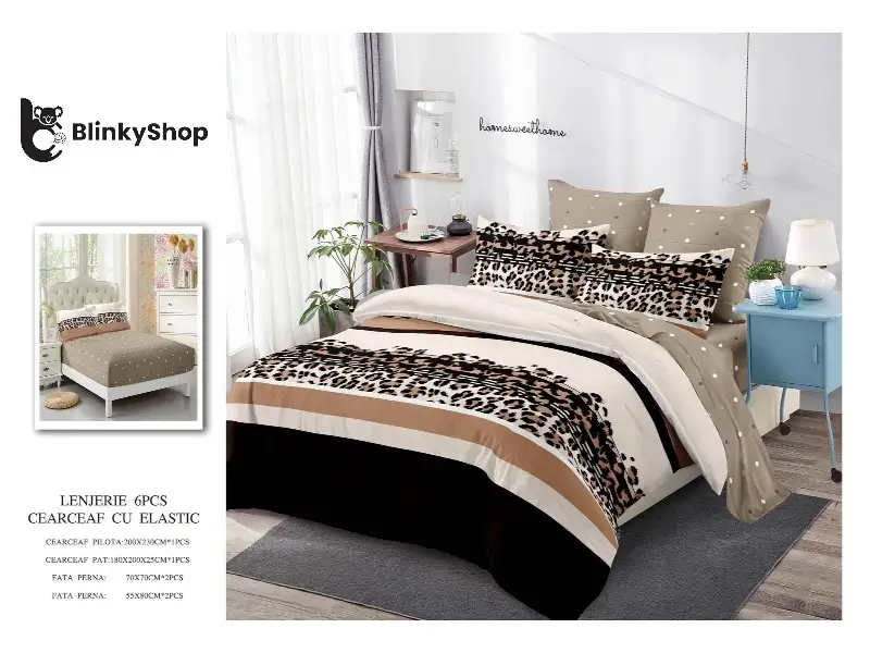 Lenjerie de pat din finet din 6 piese, cearceaf finet cu elastic potrivit pentru orice dormitor. Material rezistent, fin si elegant. Producător: Primavara