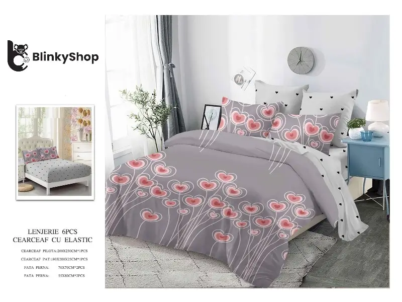 Lenjerie de pat din finet din 6 piese, cearceaf finet cu elastic potrivit pentru orice dormitor. Material rezistent, fin si elegant. Producător: Primavara