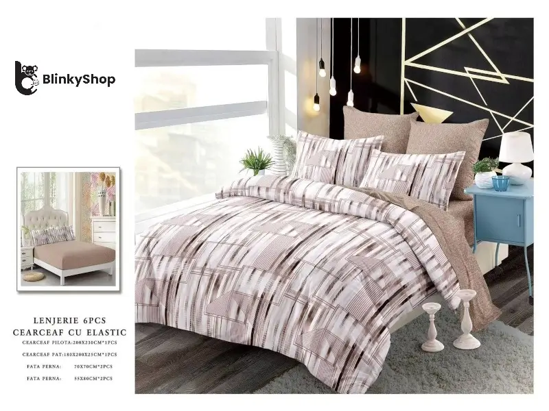 Lenjerie de pat din finet din 6 piese, cearceaf finet cu elastic potrivit pentru orice dormitor. Material rezistent, fin si elegant. Producător: Primavara