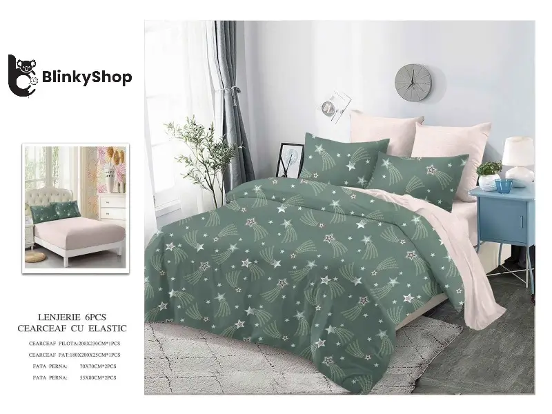Lenjerie de pat din finet din 6 piese, cearceaf finet cu elastic potrivit pentru orice dormitor. Material rezistent, fin si elegant. Producător: Primavara