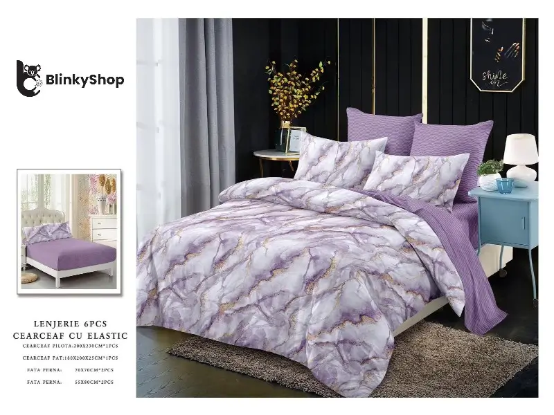 Lenjerie de pat din finet din 6 piese, cearceaf finet cu elastic potrivit pentru orice dormitor. Material rezistent, fin si elegant. Producător: Primavara
