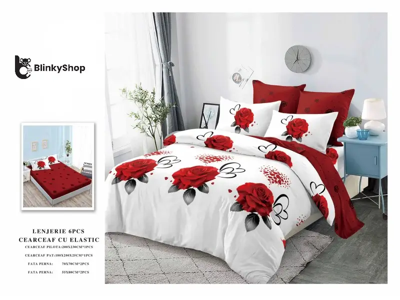 Lenjerie de pat din finet din 6 piese, cearceaf finet cu elastic potrivit pentru orice dormitor. Material rezistent, fin si elegant. Producător: Primavara
