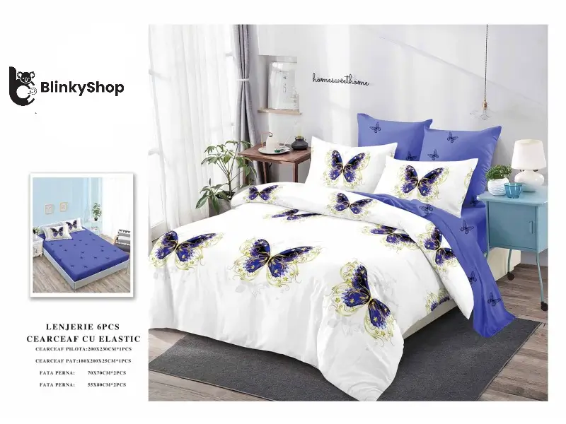 Lenjerie de pat din finet din 6 piese, cearceaf finet cu elastic potrivit pentru orice dormitor. Material rezistent, fin si elegant. Producător: Primavara