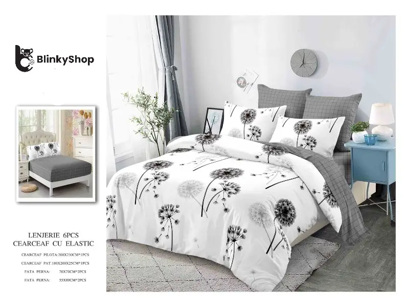 Lenjerie de pat din finet din 6 piese, cearceaf finet cu elastic potrivit pentru orice dormitor. Material rezistent, fin si elegant. Producător: Primavara