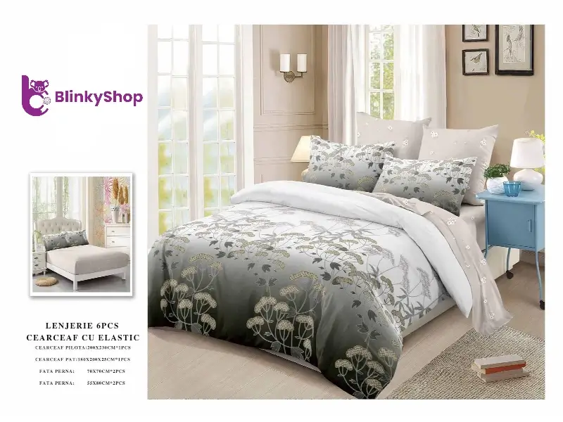 Lenjerie de pat din finet din 6 piese, cearceaf finet normal potrivit pentru orice dormitor. Material rezistent, fin si elegant. Producător: Primavara
