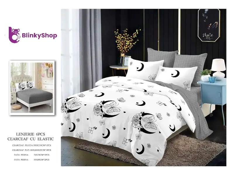 Lenjerie de pat din finet din 6 piese, cearceaf finet normal potrivit pentru orice dormitor. Material rezistent, fin si elegant. Producător: Primavara