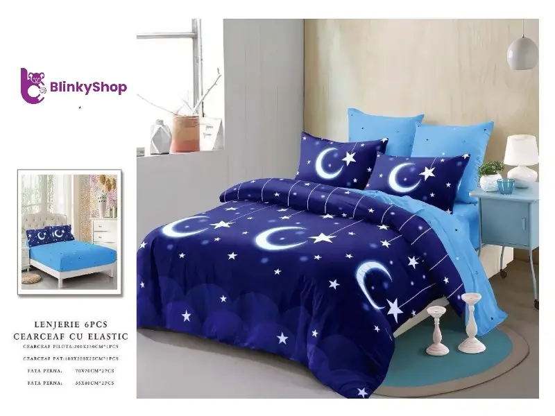 Lenjerie de pat din finet din 6 piese, cearceaf finet normal potrivit pentru orice dormitor. Material rezistent, fin si elegant. Producător: Primavara