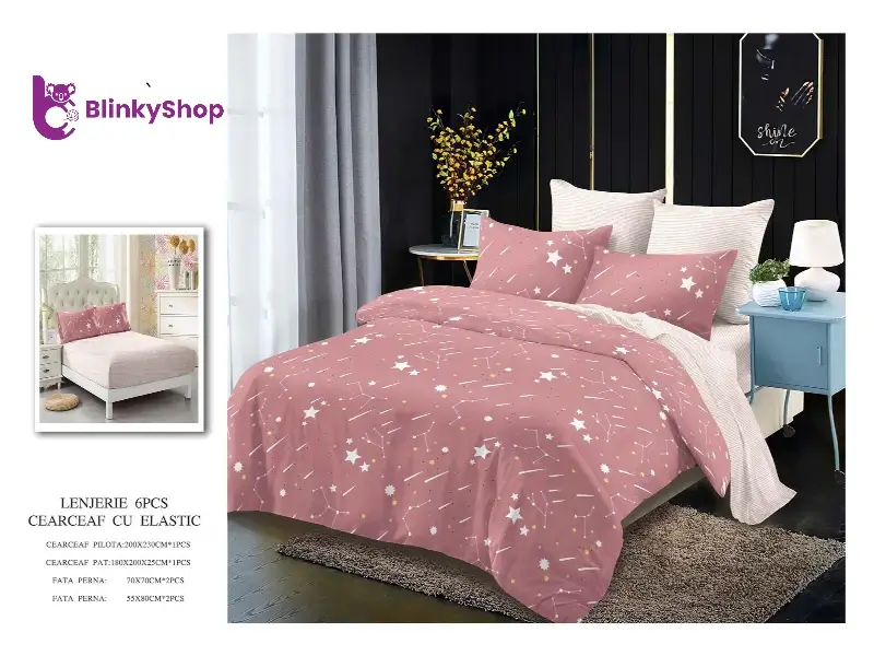 Lenjerie de pat din finet din 6 piese, cearceaf finet normal potrivit pentru orice dormitor. Material rezistent, fin si elegant. Producător: Primavara