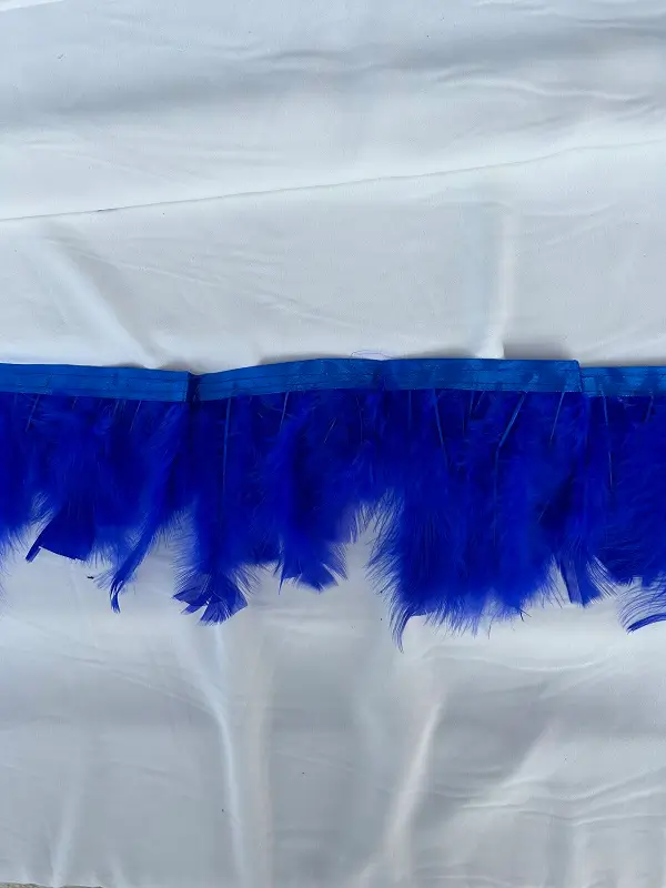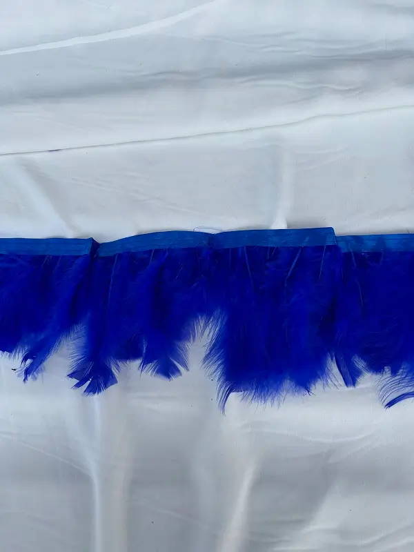 Bandă de pene de lebădă naturale, vopsite în culoarea albastru pentru accesorizarea ținutelor.