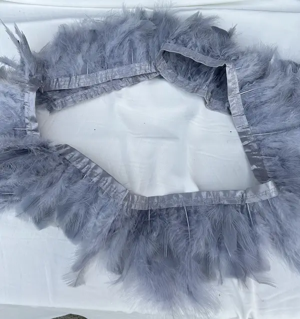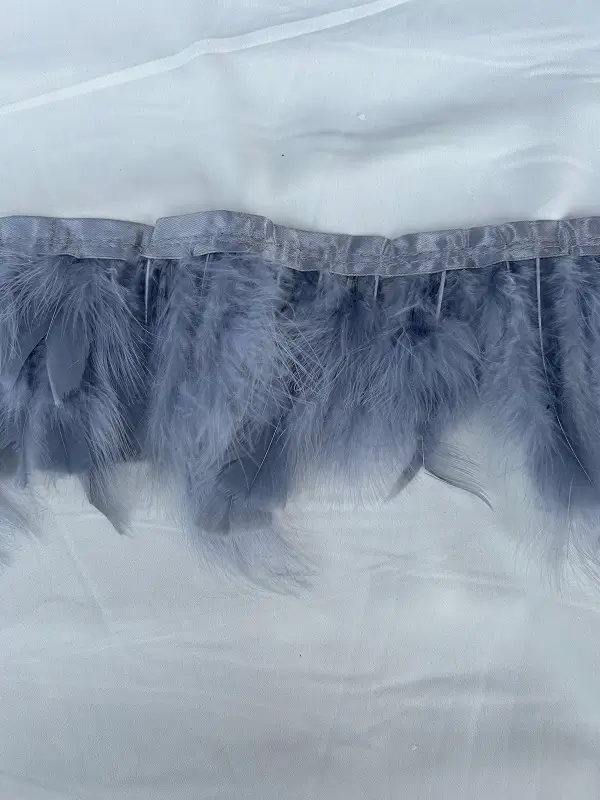 Bandă de pene de lebădă naturale, vopsite în culoarea gri deschis pentru accesorizarea ținutelor.