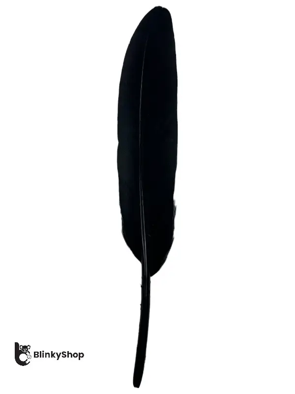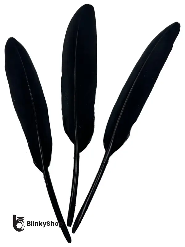 Pene de porumbel naturale, vopsite în culoarea negru. Lungimea unei pene: 10-14 cm. Se comercializează ambalate în pungi a câte 100 bucăți. Prețul afișat este pentru o pungă.