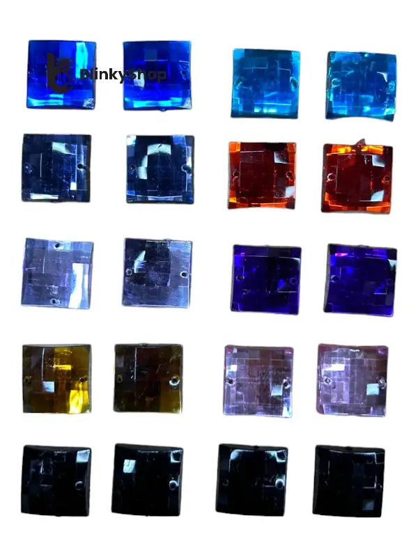 Pietre de cusut pătrate acril 18mm sunt disponibile într-o gamă variată de culori. Sunt prevăzute cu găuri laterale, facilitând aplicarea prin coasere pe orice tip de material. Aceste pietre sunt ideale pentru personalizarea hainelor, accesoriilor și proiectelor de artizanat.