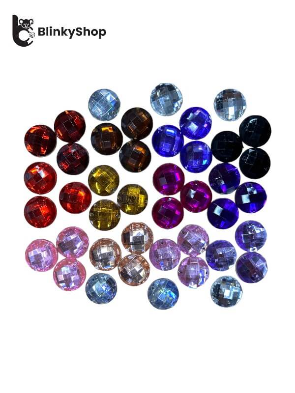 Pietre De Cusut Rotunde Acril 20mm sunt disponibile într-o gamă variată de culori. Sunt prevăzute cu două găuri laterale, facilitând aplicarea prin coasere pe orice tip de material. Aceste pietre sunt ideale pentru personalizarea hainelor, accesoriilor și proiectelor de artizanat.